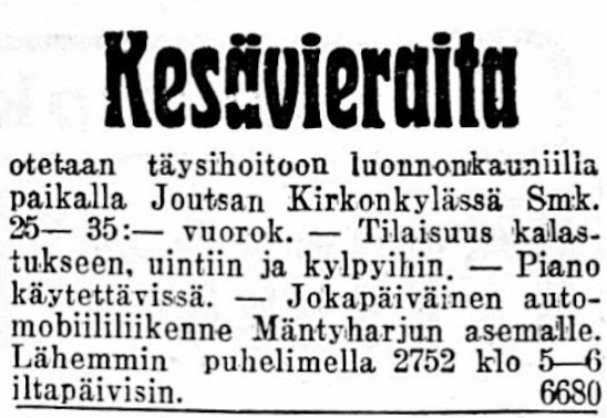 *Ilmoitukset päätettiin seuraavana vuonna julkaista Mikkelin Sanomissa, Länsi-Savossa